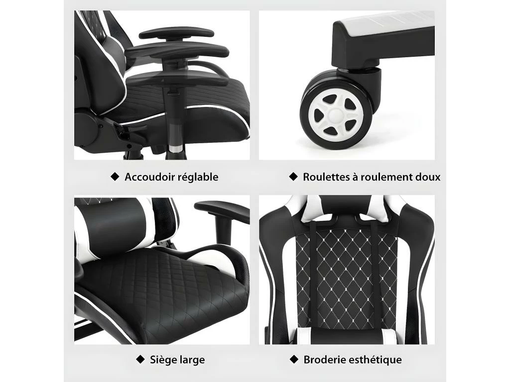- 【Roulettes pivotantes et lisses à 360 °: 】La chaise de jeu est équipée d’une base à 5 griffes, de manière à disperser uniformément la pression pour une plus grande stabilité. En outre, les roulettes lisses vous permettent de vous déplacer pour discuter avec d’autres joueurs ou prendre quelque chose. De plus, lorsque vous vous sentez fatigué, le siège pivotant à 360 ° vous aidera à vous détendre davantage.