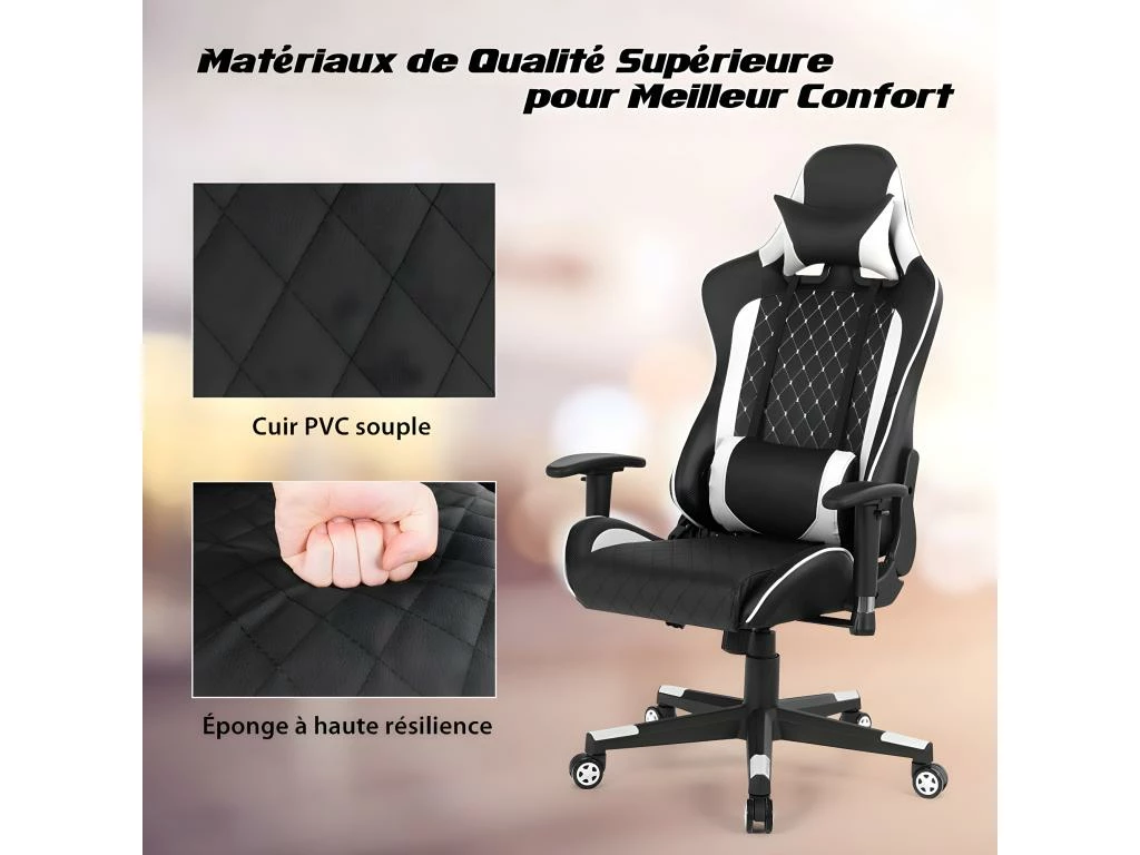 - 【Conception ergonomique pour un confort accru: 】La chaise de jeu est conforme au principe ergonomique, reflété dans l’appui-tête souple, le soutien lombaire adapté, l’assise large et l’accoudoir réglable. Ils s’adaptent bien à la courbe de votre corps et porte ainsi le confort assis au niveau supérieur. De plus, il convient de mentionner qu’elle est conçue avec une fonction de bascule, plus facile pour détendre votre corps.