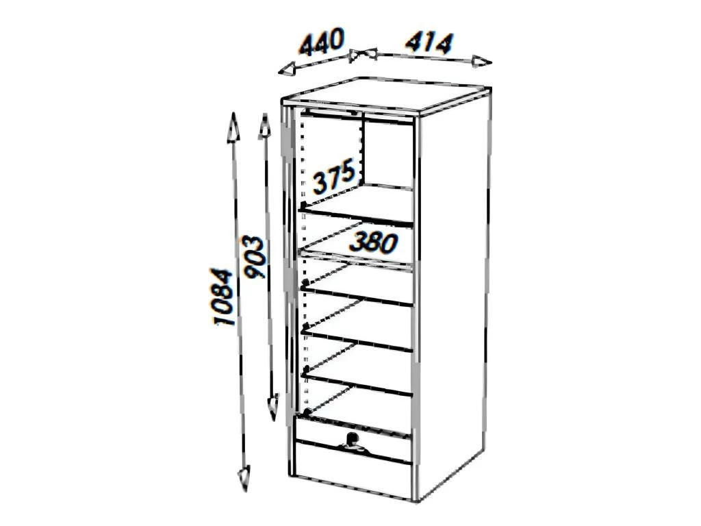 – Intérieur : Largeur 38 cm x Hauteur 90.3 cm x Profondeur 37.5 cm