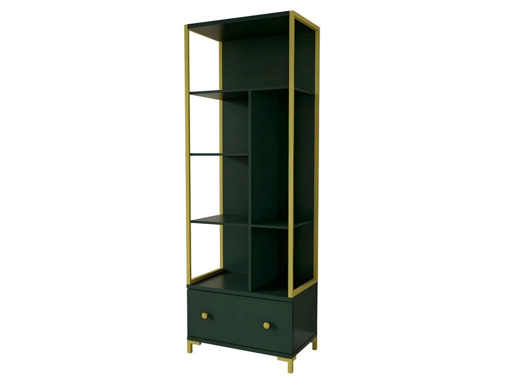 – COLORIS : Structure et poignées tiroirs en métal doré, meuble coloris vert.