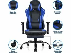 Fauteuil Gamer, Chaise Gaming Inclinable Avec Repose-pieds Télescopique Avec Appui-tête