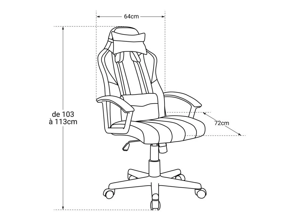 – Hauteur des accoudoirs : H 63 à 72,5cm