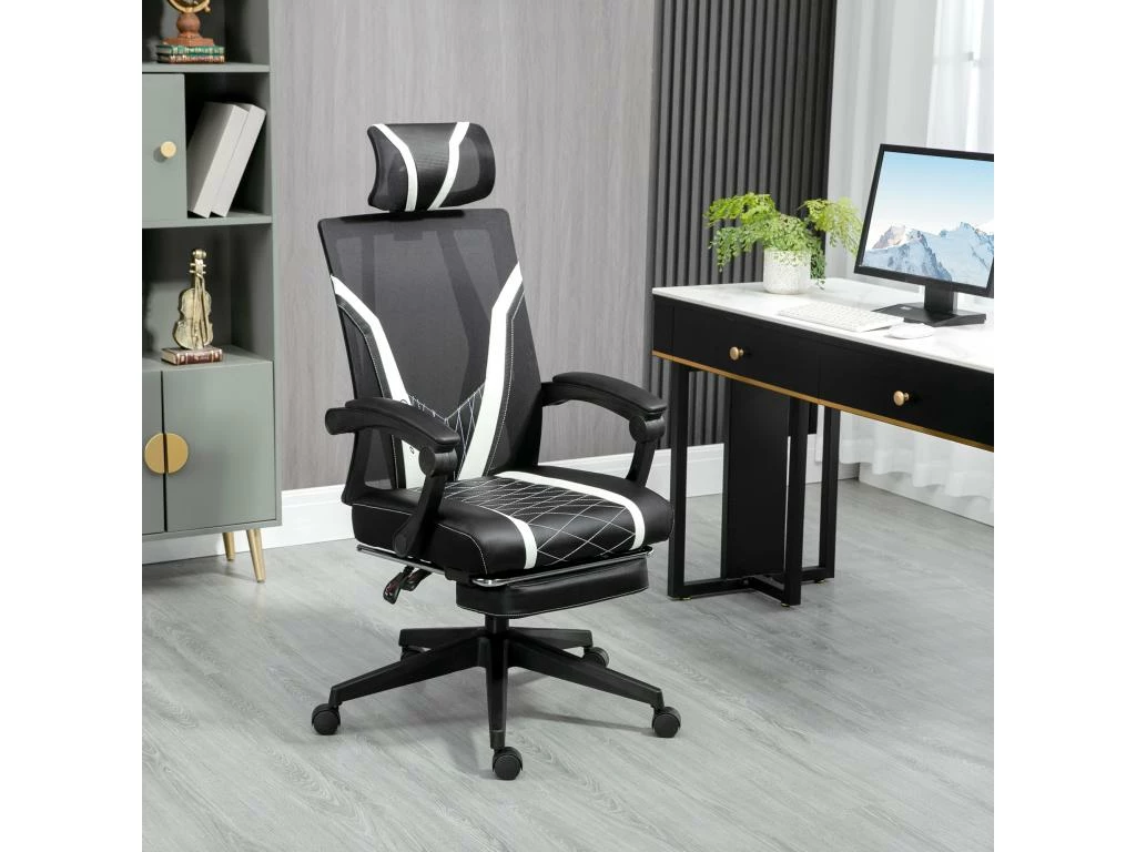 – Garnissage épais assise, dossier et accoudoirs en mousse haute densité avec revêtement mixte synthétique PU et maille polyester très confortable, facile d’entretien
