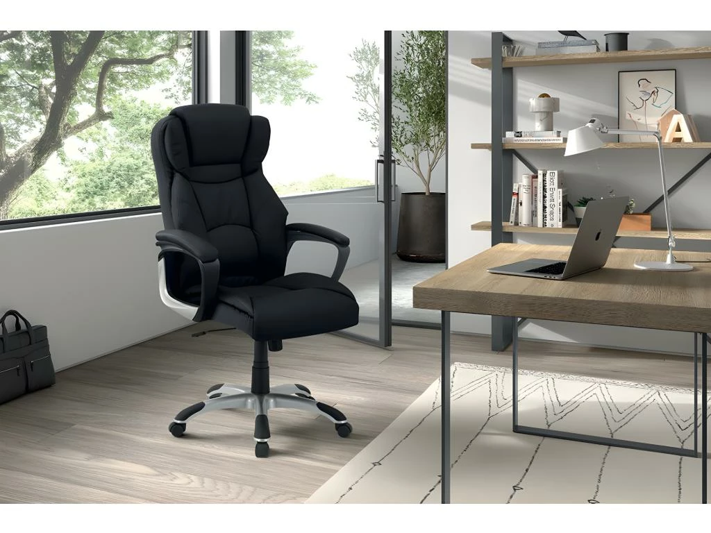 Son revêtement en PU associé à un piétement en métal de couleur noir très résistant sera facile d’entretien. Ce mariage de matières offre un style design, très tendance.