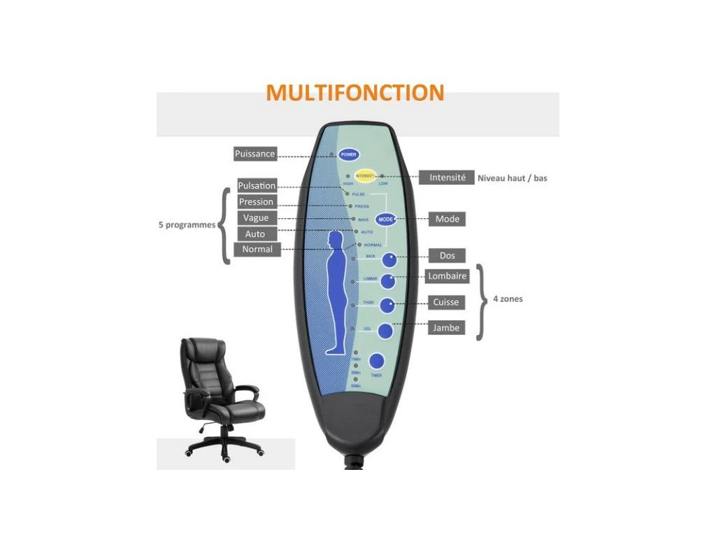 Pour le travail et la détente, le fauteuil de bureau MASON de MYCOCOONING sait s’adapter. Confortable et moelleux, il dispose d’une fonction massage très appréciée. Une télécommande vous permet de choisir parmi les programmes différents modes pour activer les 4 points de massage du dossier et les 2 de l’assise. Celle-ci est réglable en hauteur et le fauteuil peut également pivoter à 360°. Les roulettes robustes facilitent le déplacement de ce siège accueillant.