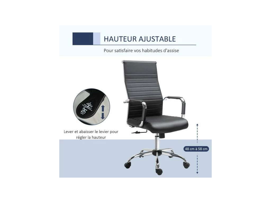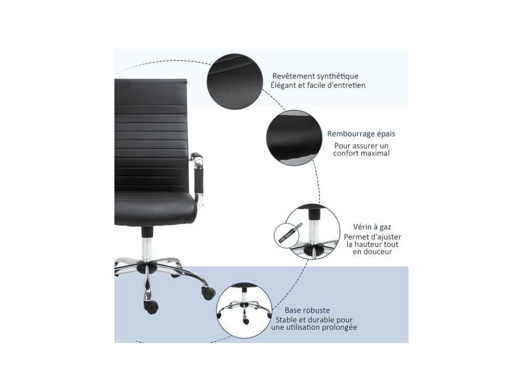 - Matériaux principaux : revêtement synthétique PU, garnissage mousse, métal, nylon