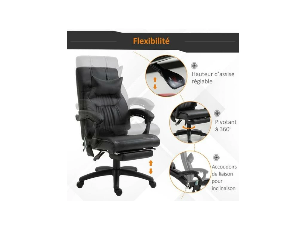 - Matériaux principaux : revêtement synthétique, garnissage mousse, nylon, PVC