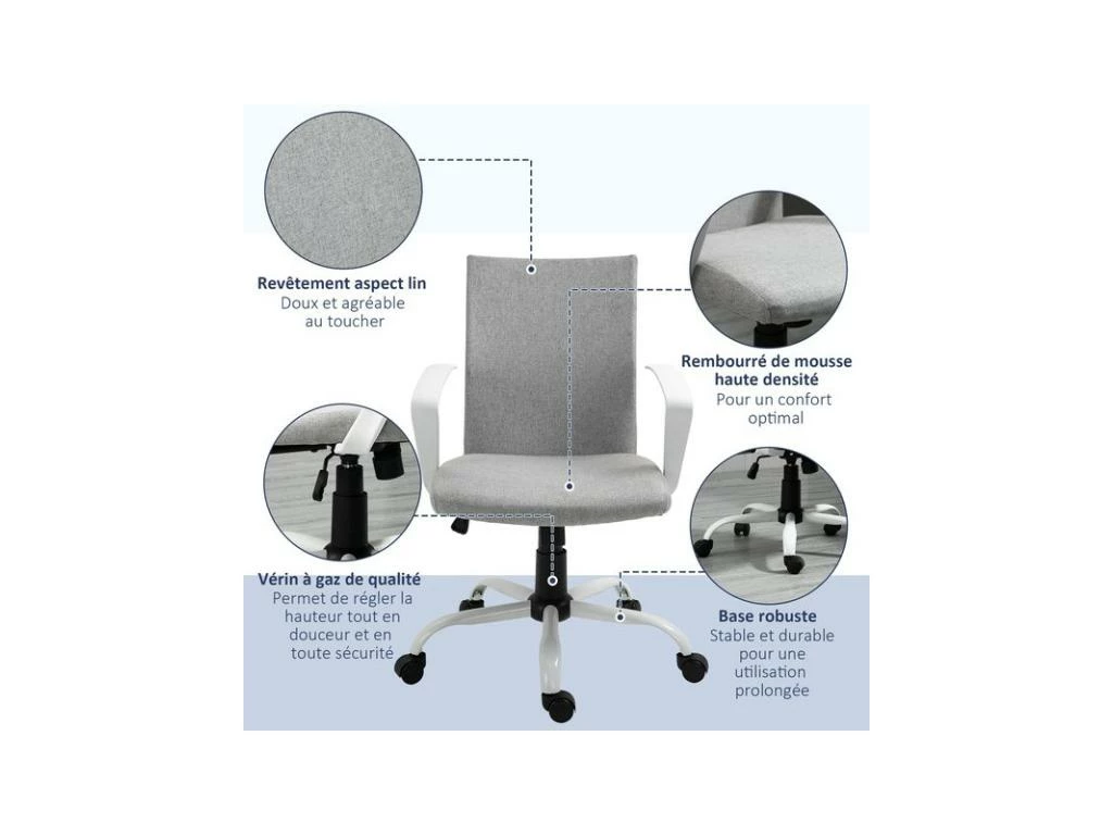- Matériaux principaux : tissu de lin, garnissage mousse, nylon, PU, acier
