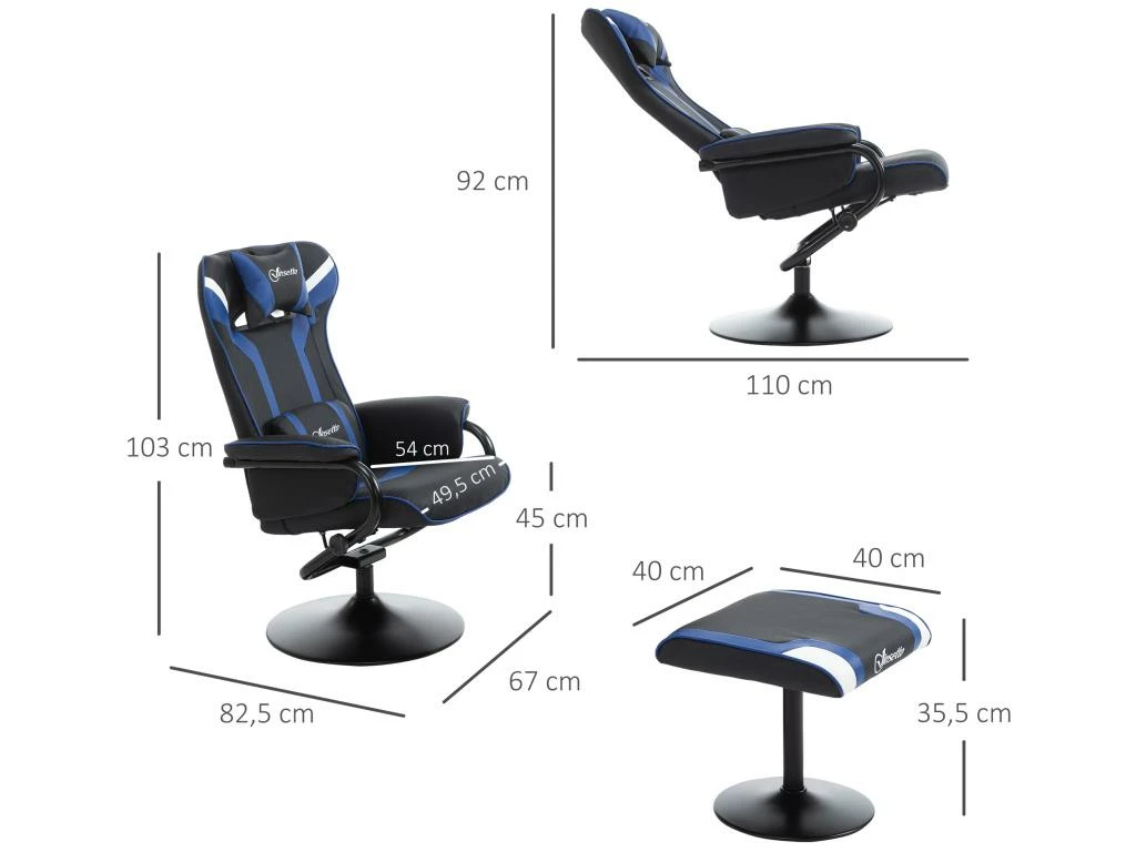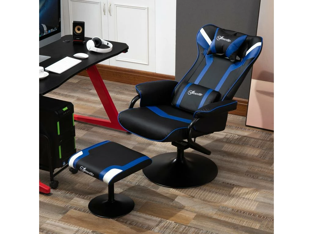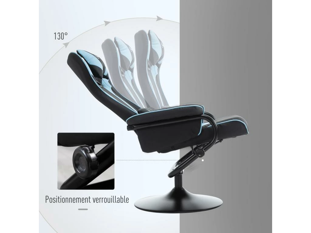 – Fauteuil gaming avec repose-pieds bleu et noir idéal pour apporter une touche d’ambiance e-sport à votre intérieur et vous offrir une meilleure expérience de jeux