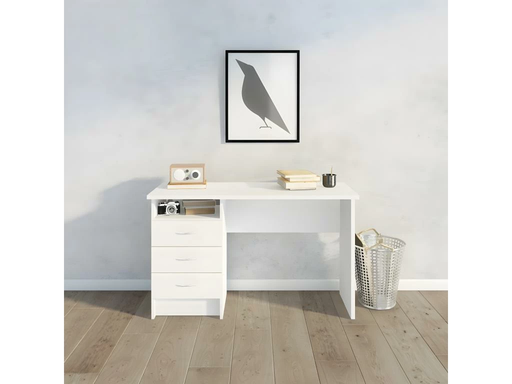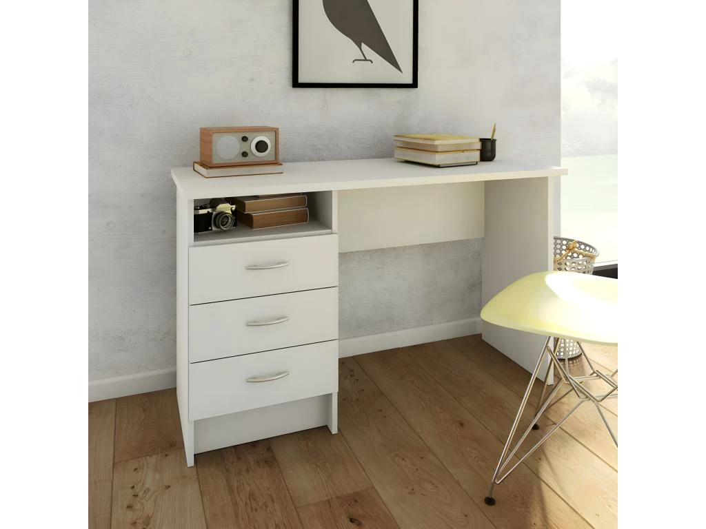 Bureau Avec 3 Tiroirs – MDF Laqué Et Métal – Blanc Et Doré – TIMFIA De Pascal Morabito