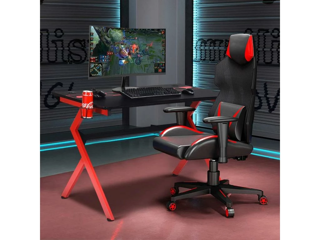 La table de jeu est équipée d’une prise pour écouteurs et d’un porte-gobelet, afin de libérer plus de place pour vos différents accessoires de jeu. Il y a deux trous pour la gestion des câbles, conçus pour garder les câbles organisés. De plus, la texture lisse de la fibre de carbone peut non seulement donner un aspect cool au bureau, mais aussi assurer le confort de vos mains pendant le jeu. Le bord avant ergonomique et incurvé est supérieur au bord horizontal rigide, ce qui améliorera l’expérience du joueur.