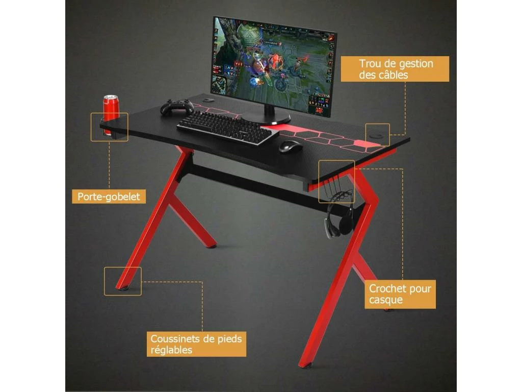 【Surface de jeu spacieuse】: Le bureau mesure 115 cm X 66 cm, il est conçu pour offrir suffisamment d’espace pour que les joueurs puissent placer divers équipements de jeu. En outre, la surface en fibre de carbone est plus résistante et plus confortable au toucher.