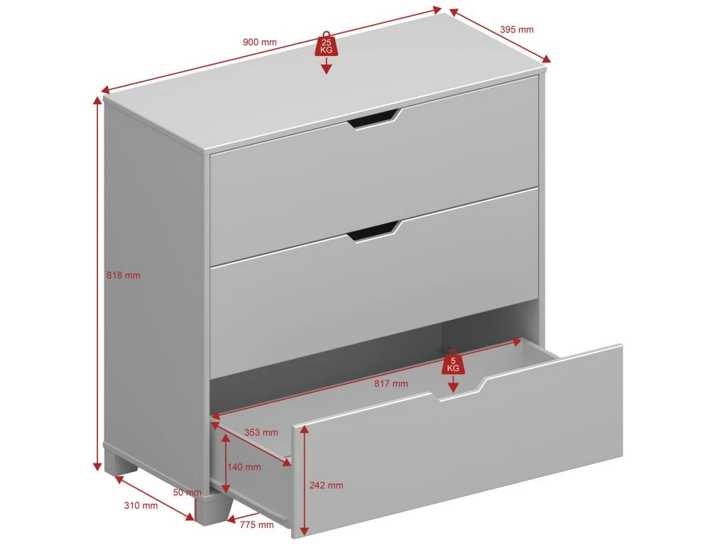 Mover Armoire De Bureau Avec 2 Portes Coulissantes 2 Portes, 2 Tiroirs Blanche.