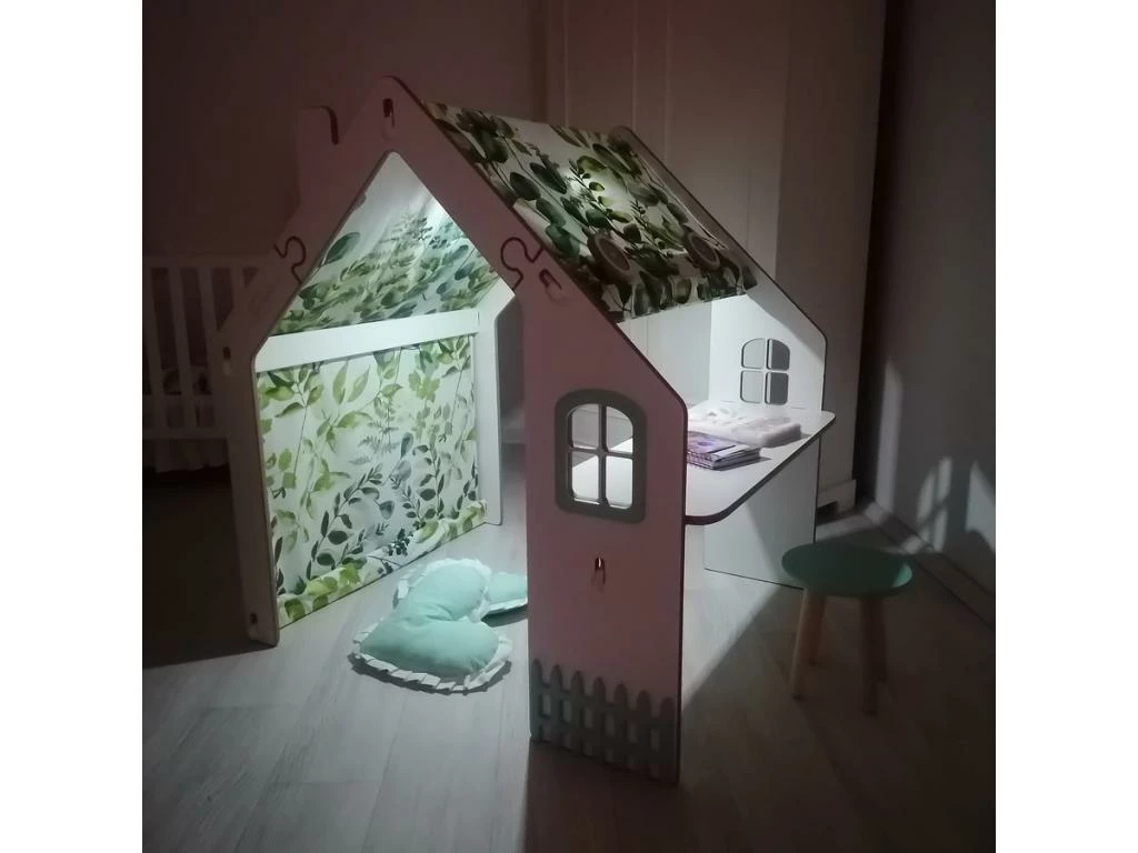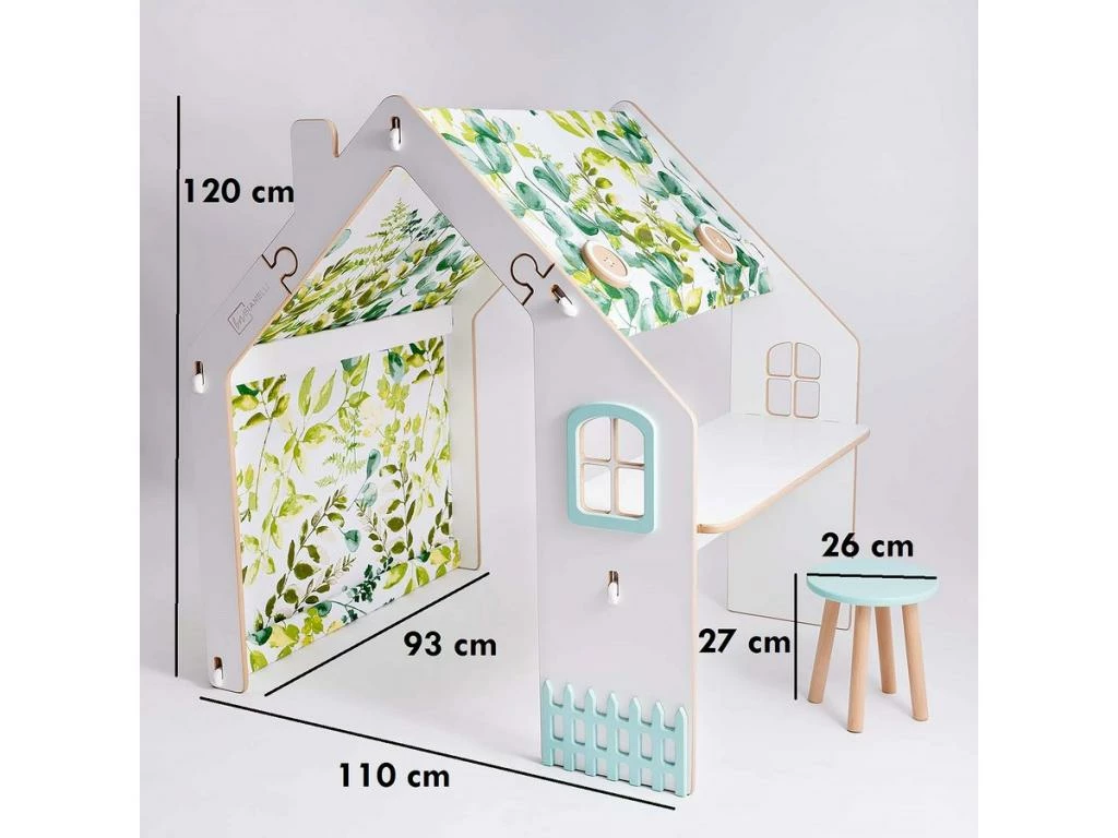 Le plus produit : La maisonnette dispose d’un tabouret et d’un éclairage LED Les bords de la maisonnette sont arrondis et peints avec un vernis à l’eau sur, inodore et écologique Fabriqué en Europe.