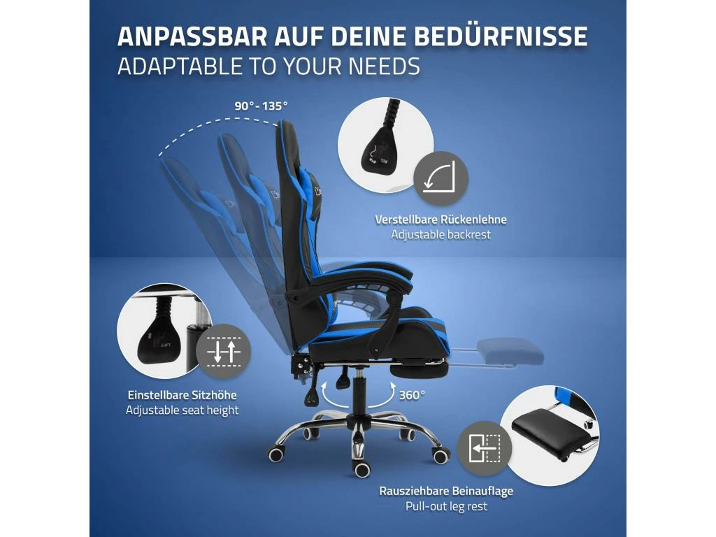 Adaptation parfaite à tes besoins Notre Gaming Chair t’offre un contrôle total de ta position assise. Le dossier réglable te permet de t’incliner entre 90 et 135 degrés, soit l’inclinaison idéale pour te concentrer pleinement sur ton jeu ou pour faire une pause bien méritée entre deux parties.