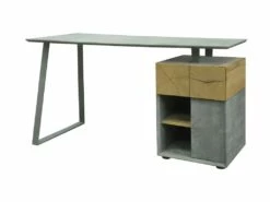 Bureau 1 Porte 1 Tiroir – Decor Bois Blanc Et Gris – L 140 X P 60 X H 75 – COLOGNE