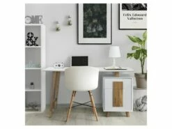 Bureau 1 Porte 1 Tiroir – Décor Bois Et Blanc – L 140 X P 76 X H 60 – HAMBOURG