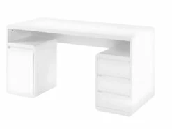 Bureau Avec 3 Tiroirs – MDF Laqué Et Métal – Blanc Et Doré – TIMFIA De Pascal Morabito