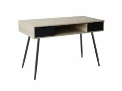 Bureau Style Industriel Casier Tiroir Coulissant Panneaux MDF Noir Aspect Noyer