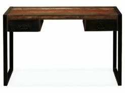 Bureau Table Meuble Travail Informatique Avec 2 Tiroirs Bois De Récupération Massif 120 Cm 0502062