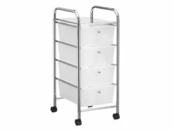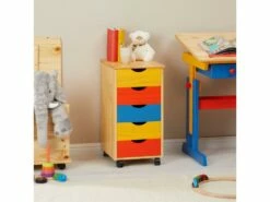Caisson De Bureau LAGOS Meuble De Rangement Sur Roulettes Avec 5 Tiroirs, En Pin Massif Lasuré Blanc