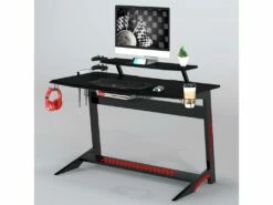 Bureau Gaming La Meilleraie En Bois Mdf Style Fibre De Carbone Noir / Rouge