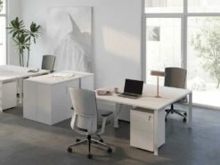 Bureau Bench 2 Personnes – Blanc – L140 Cm – Avec Séparateur – DOWNTOWN