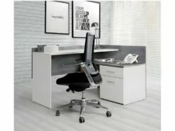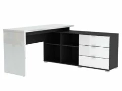 Bureau D’Angle Châtaignier Et Blanc Caisson 3 Tiroirs Et Armoirette