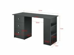 Table De Bureau Secrétaire Poste De Travail Informatique Avec 3 Tiroirs 120 Cm Gris Foncé 03_0004711
