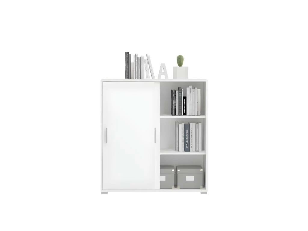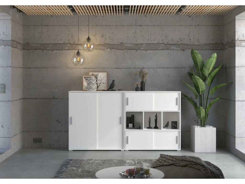 Mover Armoire De Bureau Avec 2 Portes Coulissantes 2 Portes, 2 Tiroirs Blanche.