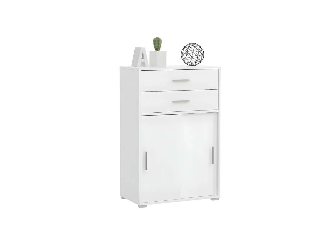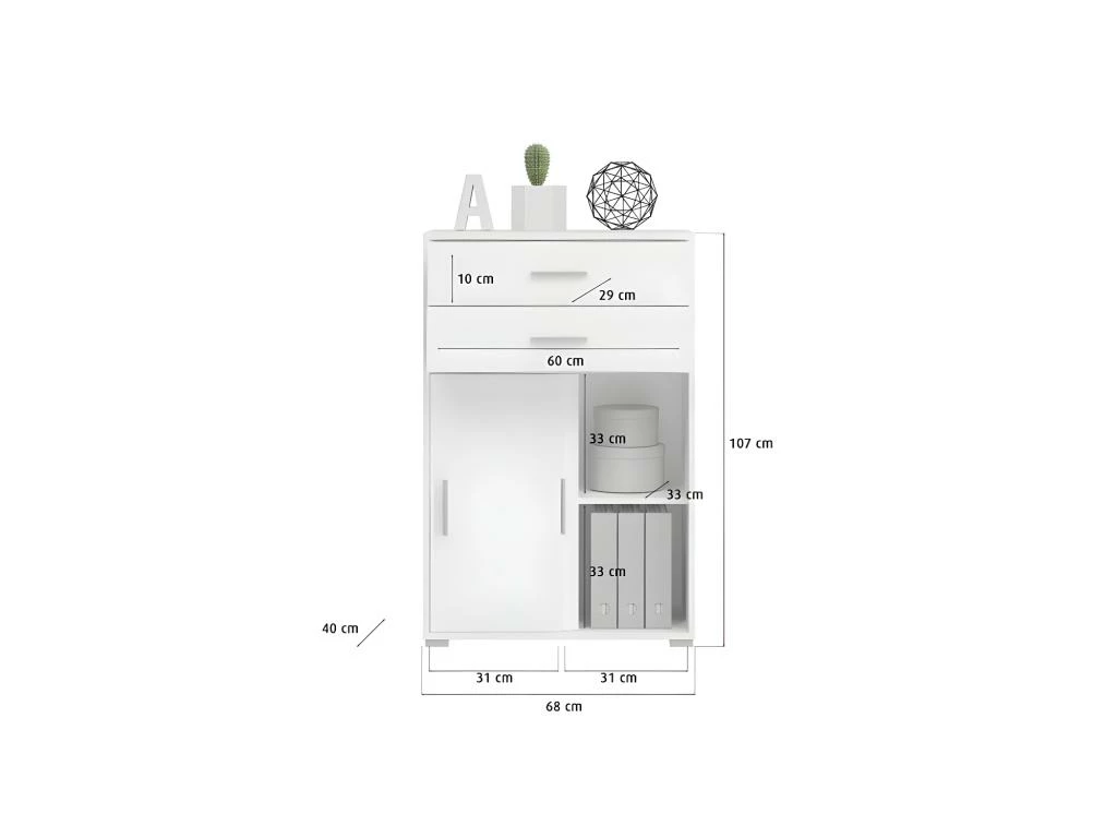 Prisme Armoire De Classement Avec 2 Tiroirs Et 2 Portes, Blanc, Imitation Chêne.