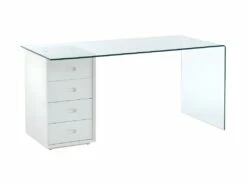 Bureau MURIEL Avec Rangements – 4 Tiroirs – Verre Trempé & MDF