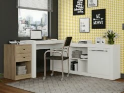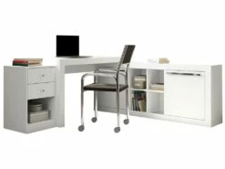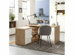 Bureau Angulaire Coloris naturel/blanc Brillant – Longueur 139 X Profondeur 92 X Hauteur 75 Cm