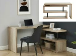 Bureau Dmarian, Bureau D’angle, Bureau Polyvalent, Bureau Fixe Peu Encombrant, 80x140h75 Cm, Noir
