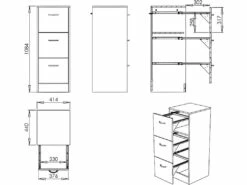 Classeur 3 Tiroirs 75 Dossiers Suspendus – Coloris: Aluminium