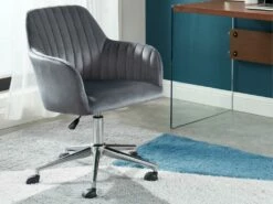 Chaise De Bureau – Velours – Gris – Hauteur Réglable – TOSILI