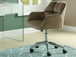 Chaise De Bureau – Velours – Beige – Hauteur Réglable – PEGA