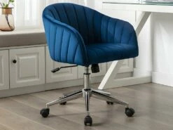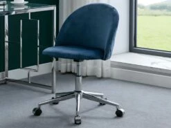 Chaise De Bureau – Velours – Bleu – Hauteur Réglable – TOSILI