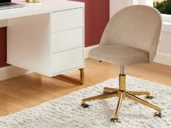 Chaise De Bureau – Velours – Beige – Hauteur Réglable – ELEANA