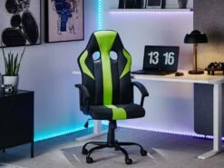 Chaise De Jeu Avec Repose-pieds Extensible 2D Accoudoirs Noir/Vert En Similicuir ML-Design