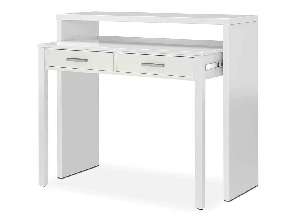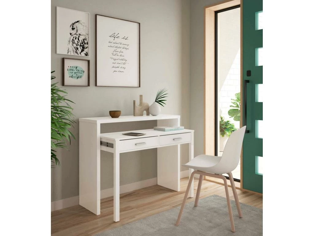 Table Console Billings, Bureau Avec Plateau Extensible, Bureau PC Avec 2 Tiroirs, 99x36h88 Cm, Blanc