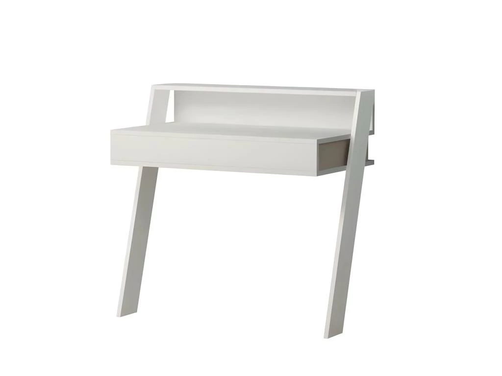 Bureau Avec 3 Tiroirs – MDF Laqué Et Métal – Blanc Et Doré – TIMFIA De Pascal Morabito