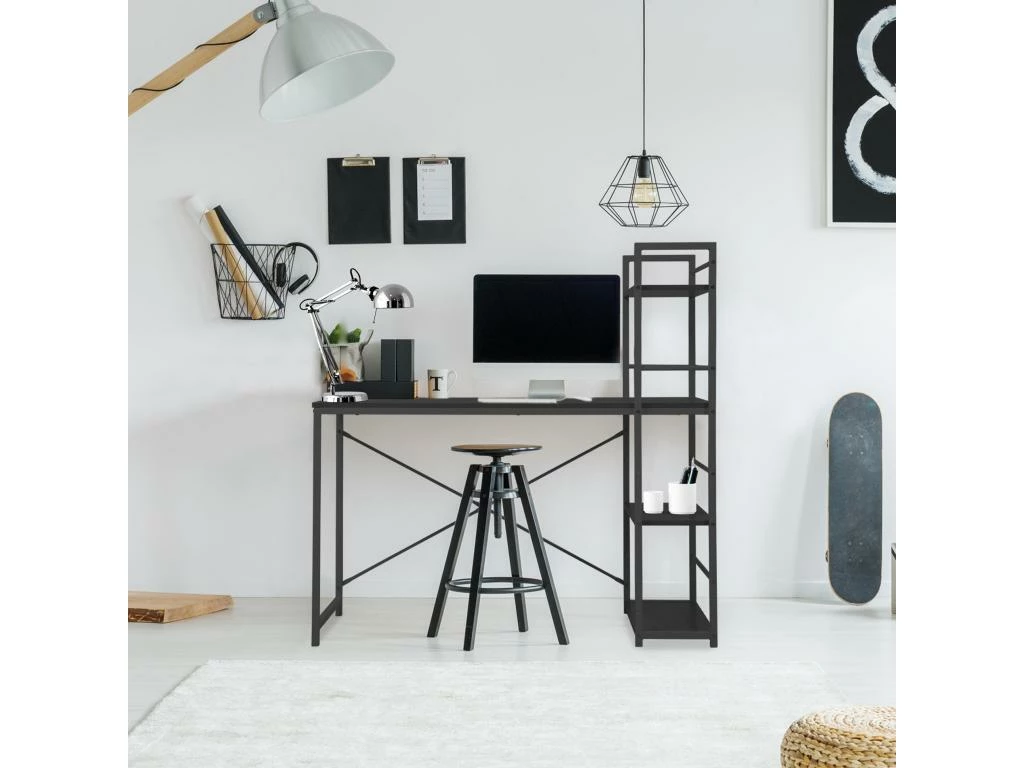– BUREAU BIBLIOTHEQUE PLEIN D’ESPACE : Deux meubles en un : un bureau confortable et une bibliothèque pratique réunis. Le bureau Rebecca avec étagère est parfait pour optimiser l’espace et disposer d’un bureau ou d’un poste de travail polyvalent et spacieux. L’étagère placée sur le côté de la table vous permet d’avoir tous vos documents et livres bien rangés et à portée de main tout en laissant le dessus du bureau libre et dégagé.