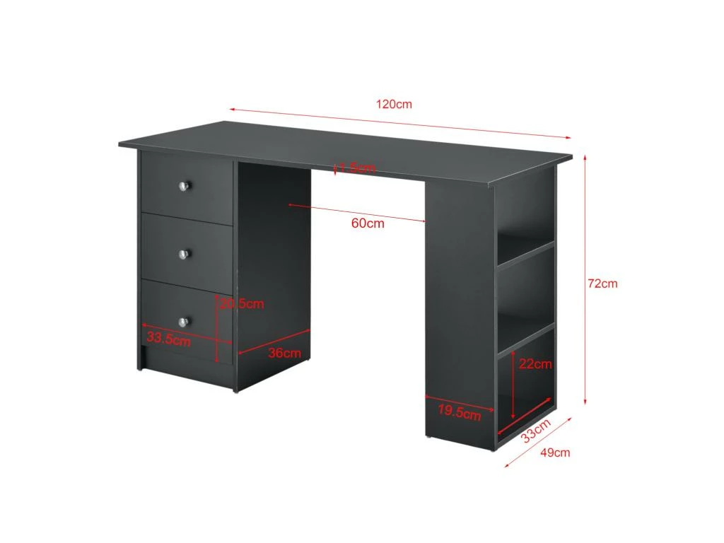 – avec 3 surfaces de stockage et 3 tiroirs