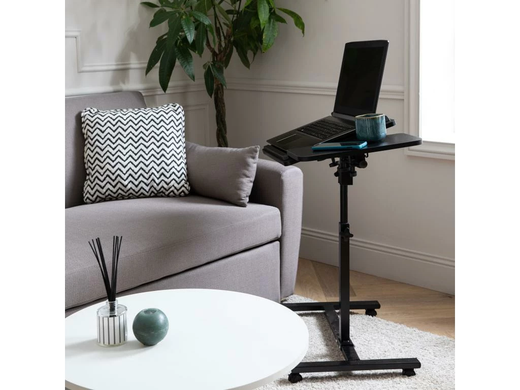 Travaillez confortablement sur votre ordinateur portable au bureau ou dans votre canapé à la maison grâce à ce petit bureau mobile. Pratique avec ses petites roulettes, vous pourrez le déplacer partout. Son plateau est ajustable en hauteur et inclinable, afin d’avoir votre laptop dans un angle idéal pour rédiger vos documents ou surfer sur internet. Cette table à roulettes est le bureau parfait pour le télétravail.