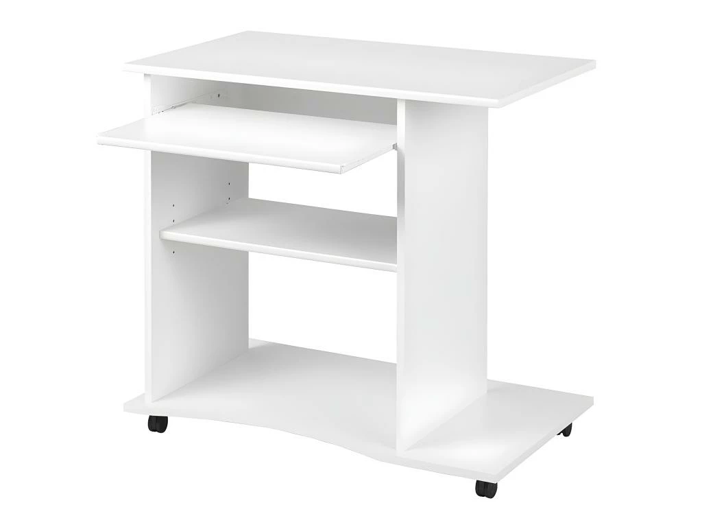 Structure en panneaux de particules, revêtement coloris blanc. Meuble info sur roulettes.